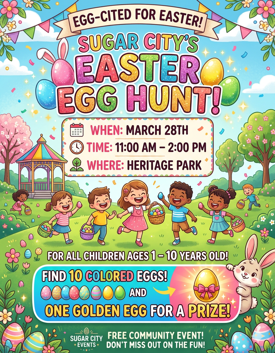 Hop on over to Heritage Park for Sugar City’s annual Easter Egg Hunt! Mark your calendars for March 28th from 11:00 AM to 2:00 PM for a day of sweet surprises and community fun. The Details: Who: All kids ages 1–10 years old. The Loot: Every child can gather 10 colored eggs. The Big Prize: […]